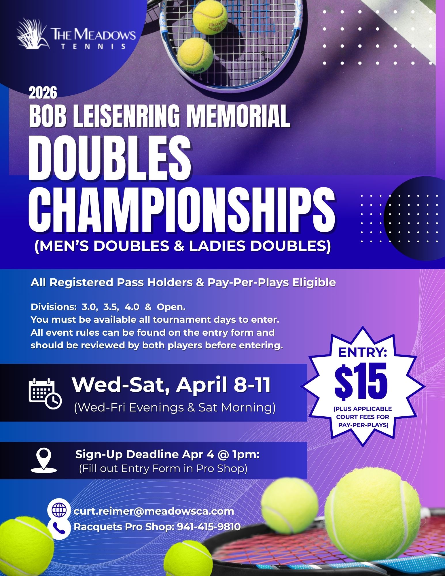 WELCOME TO THE MEADOWS RACQUETS PRO SHOP